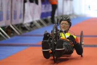 Gdańsk. Ponad 4000 biegaczek i biegaczy pobiegło w AmberExpo Półmaratonie Gdańsk 2016. Nz Zwycięzca Pólmatatonu na wózku Bogdan Król z Ornety.