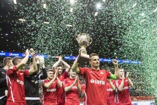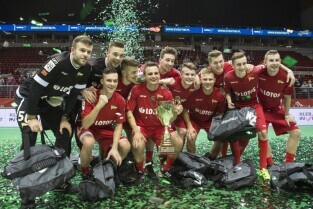 Amber Cup 2016. Turniej halowej piłki nożnej. Lechia Gdańsk - zwycięzcy turnieju. Ergo Arena, Gdańsk-Sopot