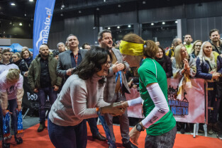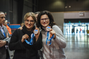 Gdańsk. Amber Expo Półmaraton im. P. Adamowicza. Nz. Madalena Adamowicz i Prezydent Gdańska Aleksandra Dulkiewicz