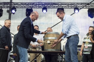 PGE Arena Gdańsk. Amber Fest 2015 - Gdańskie Święto Piwa. Nz. Z-ca Prezydenta Gdańska Andrzej Bojanowski, po lewej Krzysztof Skiba