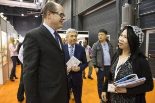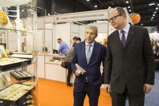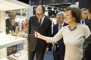 Amberif 2015 - 22. Międzynarodowe Targi Bursztynu, Biżuterii i Kamieni Jubilerskich. Nz. Prezydent Gdańska Paweł Adamowicz