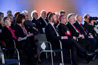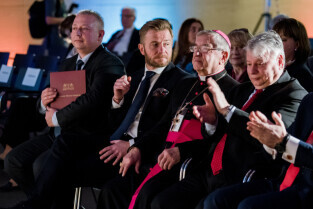 Amberif 2017. 24. Międzynarodowe Targi Bursztynu, Biżuterii i Kamieni Jubilerskich. Gdańsk, Amber Expo. Nz. od lewej, Andrzej Bojanowski Z-ca Prezydenta ds. polityki gospodarczej, Ryszard Świlski-Członek Zarządu Województwa Pomorskiego, Metropolita Gdański Arcybiskup Sławoj Leszek Głódź, wicemarszałek Senatu RP Bogdan Borusewicz