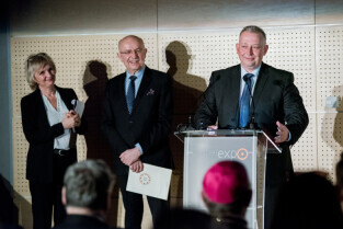 Amberif 2017. 24. Międzynarodowe Targi Bursztynu, Biżuterii i Kamieni Jubilerskich. Gdańsk, Amber Expo. Nz. Ewa Rachoń, Andrzej Kasprzak, prezes Międzynarodowych Targów Gdańskich i Andrzej Bojanowski Z-ca Prezydenta ds. polityki gospodarczej