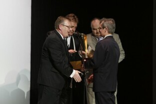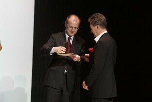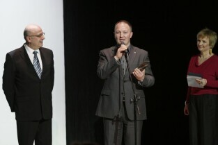 Gala bursztynu i mody Amberif 2011. Gdańsk, Filharmonia Bałtycka. Nz. ceremonia wręczenia nagrody Mercurius Gedanensis