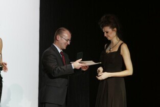 Gala bursztynu i mody Amberif 2011. Gdańsk, Filharmonia Bałtycka. Nz. ceremonia wręczenia nagrody Amberif Design Award