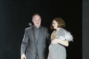 Gala bursztynu i mody Amberif 2011. Gdańsk, Filharmonia Bałtycka. Nz. ceremonia wręczenia nagrody Bursztynowe Rzemiosło