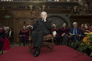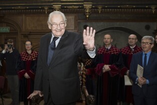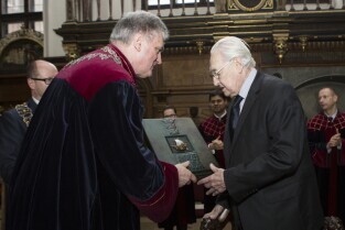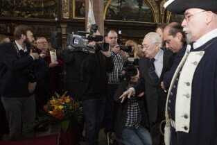 Gdańsk, Dwór Artusa. Uroczystość nadania tytułu Honorowego Obywatela Miasta Gdańska reżyserowi Andrzejowi Wajdzie podczas nadzwyczajnej Sesji Rady Miasta