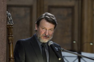 Gdańsk, Dwór Artusa. Uroczystość nadania tytułu Honorowego Obywatela Miasta Gdańska reżyserowi Andrzejowi Wajdzie podczas nadzwyczajnej Sesji Rady Miasta. Nz. aktor Robert Więckiewicz