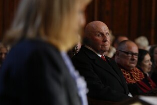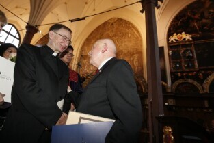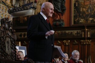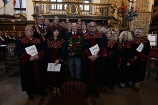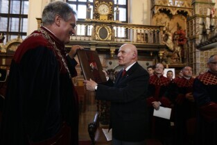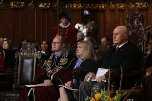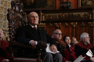 Uroczysta sesja Rady Miasta Gdańska poświęcona wręczeniu tytułu Honorowego Obywatela Miasta Gdańska profesorowi Andrzejowi Zbierskiemu. Gdańsk, Dwór Artusa