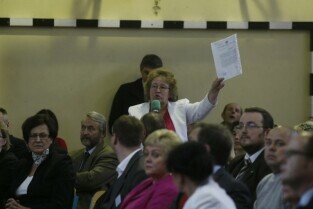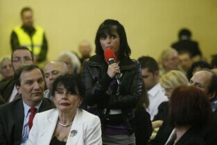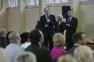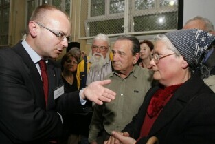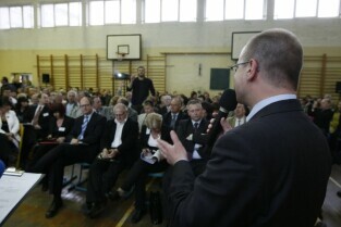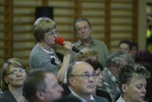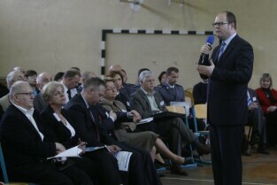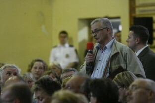 Spotkanie Prezydenta Gdańska Pawła Adamowicza z mieszkańcami dzielnicy Aniołki. Nz. Z-ca Prezydeta Maciej Lisicki wyjaśnia mieszkańcom aspekty miejskiej gospodarki komunalnej