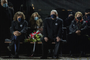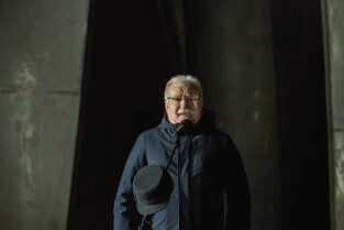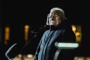Gdańsk, Pomnik Poległych Stoczniowców 1970. Apel Pamięci ofiar Grudnia. Nz. Bogdan Borusewicz