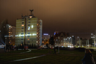 Gdańsk, ul. Wały Piastowskie. Iluminacje na zieleniaku. Grudzień 1970