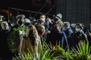 Gdańsk, Pomnik Poległych Stoczniowców 1970. Apel Pamięci ofiar Grudnia. Nz. Prezydent Gdańska Aleksandra Dulkiewicz