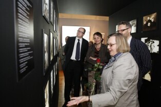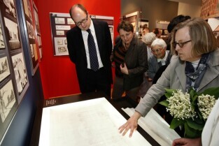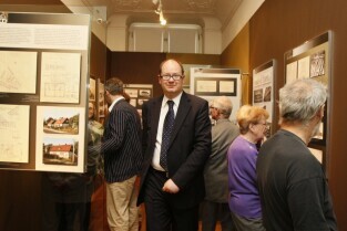 Gdańsk, Dom Uphagena. Wystawa "Architektura i urbanistyka Wolnego Miasta Gdańska (1920-1939)" prezentująca wybrane dokonania architektoniczne i urbanistyczne w postaci zdjęć, map i planów. Nz. Prezydent Gdańska Paweł Adamowicz