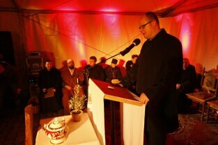 Ekumeniczna modlitwa o pokój "Asyż w Gdańsku". Kościół św. Trójcy. Nz. Prezydent Gdańska Paweł Adamowicz