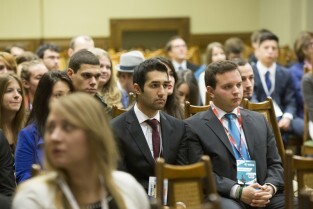 Politechnika Gdańska. BEST Presidents Meeting - otwarcie konferencji studentów europejskich uczelni technicznych. Nz. Prezydent Gdańska Paweł Adamowicz