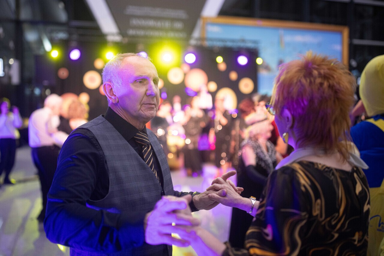 Gdańsk, Port Lotniczy Gdańsk im. Lecha Wałęsy. Karnawał dla seniorów na lotnisku. Udział wzięli min. Aleksandra Kosiorek, Agnieszka Baranowska oraz Piotr Grzelak.