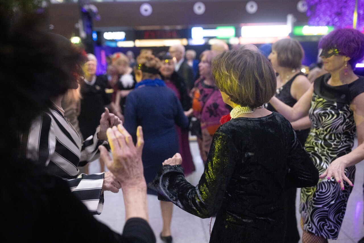 Gdańsk, Port Lotniczy Gdańsk im. Lecha Wałęsy. Karnawał dla seniorów na lotnisku. Udział wzięli min. Aleksandra Kosiorek, Agnieszka Baranowska oraz Piotr Grzelak.