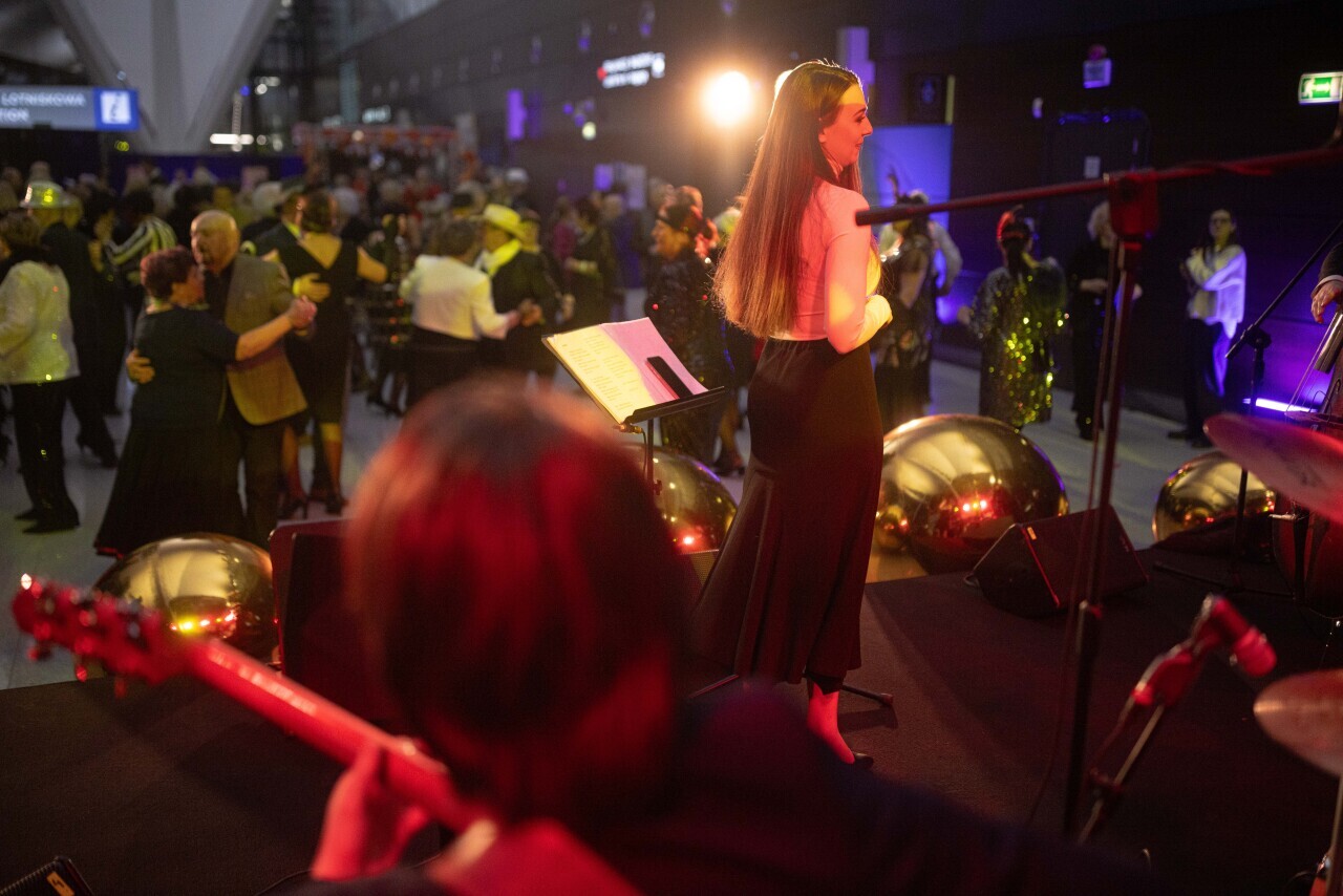 Gdańsk, Port Lotniczy Gdańsk im. Lecha Wałęsy. Karnawał dla seniorów na lotnisku. Udział wzięli min. Aleksandra Kosiorek, Agnieszka Baranowska oraz Piotr Grzelak.