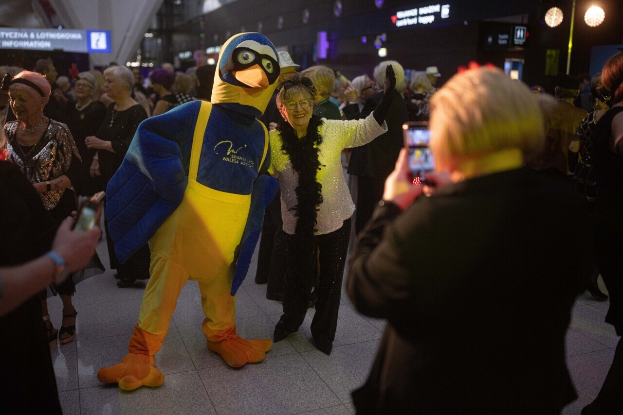 Gdańsk, Port Lotniczy Gdańsk im. Lecha Wałęsy. Karnawał dla seniorów na lotnisku. Udział wzięli min. Aleksandra Kosiorek, Agnieszka Baranowska oraz Piotr Grzelak.