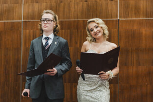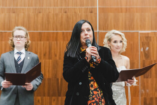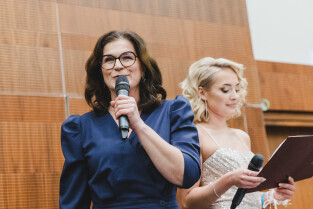 Sopot, Hotel Sheraton. Bal Studniówkowy XV LO. Nz. Prezydent Gdańska Aleksandra Dulkiewicz