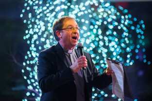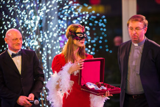 Gdańsk, Stadion Energa. Bal charytatywny z licytacją na rzecz odbudowy przedszkola w Gdańsku Letnicy. Nz ks. Zbigniew Drzał