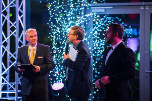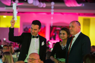 Gdańsk, Stadion Energa. Bal charytatywny z licytacją na rzecz odbudowy przedszkola w Gdańsku Letnicy. Nz. (po środku) Serdar Davran, honorowy konsul generalny Republiki Turcji