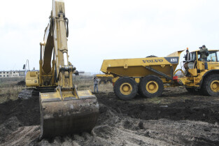 Rozpoczęcie prac ziemnych pod budowę stadionu. Gdańsk Letnica.