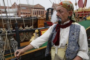 Międzynarodowy Zlot Żaglowców Baltic Sail Gdańsk 2012. Nz. inscenizacja historyczna na żaglowcu Libava