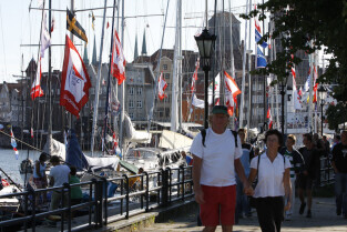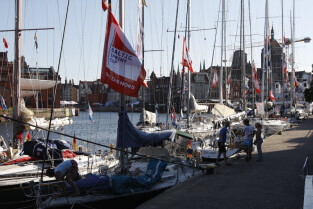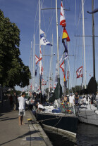 Jachty zacumowane na nabrzeżu przy ul. Wartkiej w Gdańsku (Stary Port). Łódki te biorą udział w regatach Baltic Sprint Cup.