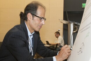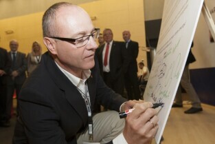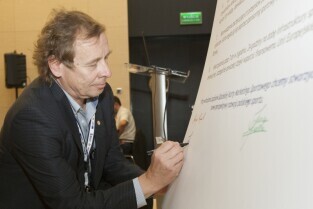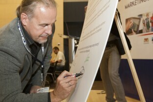Bałtycki Kongres Marketingu Sportowego. Podpisanie Gdańskiej Karty Marketingu Sportowego. Gdańsk Letnica, AmberExpo. Nz. Risto Rasku (JAMK University of Applied Sciences, Jyvaskyla, Finlandia)