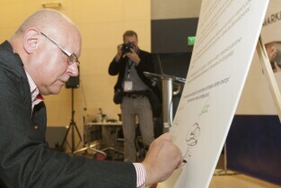 Bałtycki Kongres Marketingu Sportowego. Podpisanie Gdańskiej Karty Marketingu Sportowego. Gdańsk Letnica, AmberExpo. Nz. Prezydent Kołobrzegu Janusz Gromek