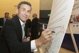 Bałtycki Kongres Marketingu Sportowego. Podpisanie Gdańskiej Karty Marketingu Sportowego. Gdańsk Letnica, AmberExpo. Nz. Marcin Herra (Prezes PL.2012+)