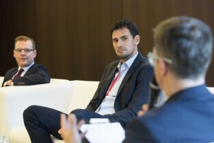 Bałtycki Kongres Marketingu Sportowego oraz I edycja Sport in Digital Media Convent. Stadion Energa Gdańsk. Nz. Dyrektor Biura Prezydenta Gdańska ds. od lewej: Sportu Andrzej Trojanowski, Jans Kevišs-Petuško (Ambasada Republiki Łotewskiej), Director Central Sales Sportfive Polska Jan de Zeeuw Jr.