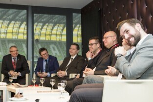 Bałtycki Kongres Marketingu Sportowego oraz I edycja Sport in Digital Media Convent. Stadion Energa Gdańsk. Nz. od lewej: Z-ca Prezydenta Gdańska Andrzej Bojanowski, Wiceprezes ds. rozwoju Związku Piłki Ręcznej w Polsce Marcin Herra, były kapitan kadry narodowej w piłce ręcznej Marcin Lijewski, Bożydar Iwanow