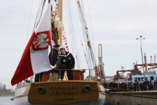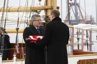 Podniesienie bandery na żaglowcu STS Generał Zaruski. W uroczystości wziął udział Prezydent RP Bronisław Komorowski. Stocznia Remontowa w Gdańsku