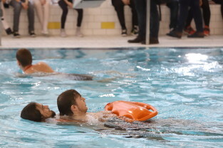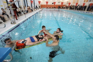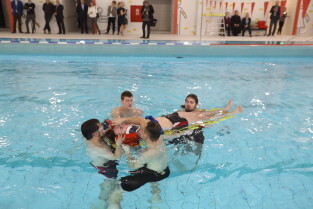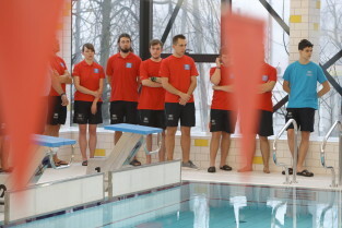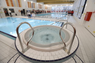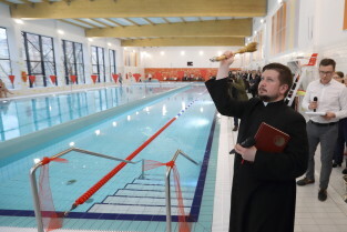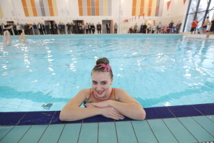 Gdańsk. Otwarcie basenu na Stogach. Nz. Radny Lukasz Hamadyk