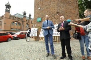 Gdańsk. Zakończyły się prace remontowe wybudowanej na przełomie XIV-XV wieku gdańskiej Baszty Jacek. Nz Prezydent Gdańska Paweł Adamowicz i Jacek Łapiński-Dyrektor GZNK.