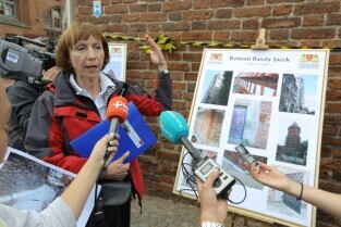 Gdańsk. Zakończyły się prace remontowe wybudowanej na przełomie XIV-XV wieku gdańskiej Baszty Jacek. Nz Maria Zakrzewska-Kierownik prac remontowych z ramienia wykonawcy.