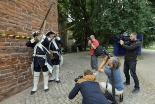 Gdańsk. Zakończyły się prace remontowe wybudowanej na przełomie XIV-XV wieku gdańskiej Baszty Jacek. Nz Anna Kisicka - Korespondent PAP i Maria Plebańczyk-Wyrostek, Mistrz Fotograf.