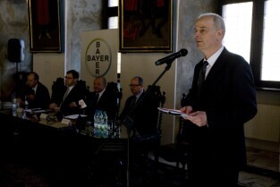 Gdańsk, Ratusz Głównego Miasta. Konferencja prasowa poświęcona planom firmy Bayer stworzenia swojego centrum finansowo-księgowego na terenie Metropolii Gdańskiej. Nz. Bayer Business Services GmbH Edgar Geyer