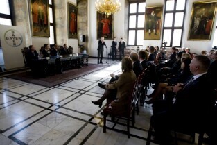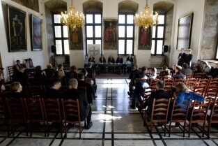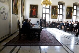 Gdańsk, Ratusz Głównego Miasta. Konferencja prasowa poświęcona planom firmy Bayer stworzenia swojego centrum finansowo-księgowego na terenie Metropolii Gdańskiej.