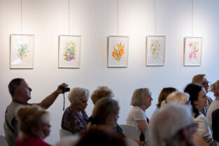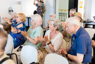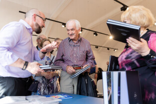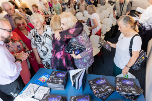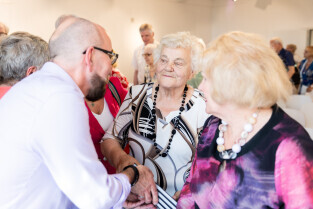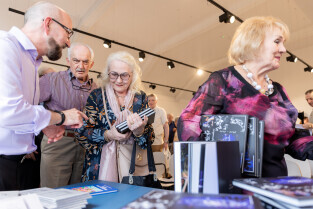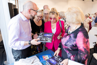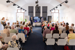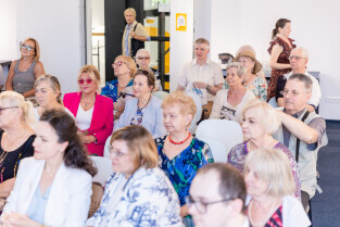 Gdańsk, ul. Dolna Brama 8. Benefis Dojrzałości podczas, którego wręczono seniorom publikacji w piostaci płyt i albumów z poezją. W spotkaniu brała udział m.in. Monika Chabior, zastępczyni prezydent Gdańska