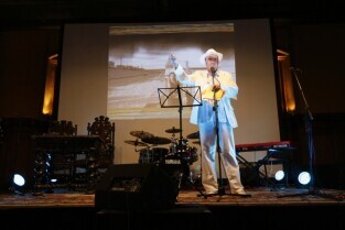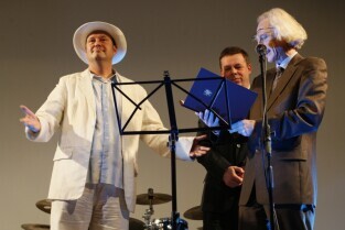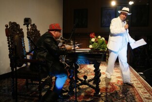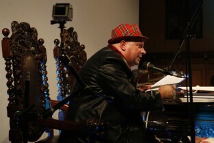 Benefis 30-lecia działalności literackiej Krzysztofa Skiby, pt. "Skiboby czyli Krzysztof Skiba XXX lat na barykadzie felietonow". Gdańsk, Nadbałtyckie Centrum Kultury. Nz. Paweł Konio Konnak