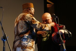 Benefis 30-lecia działalności literackiej Krzysztofa Skiby, pt. "Skiboby czyli Krzysztof Skiba XXX lat na barykadzie felietonow". Gdańsk, Nadbałtyckie Centrum Kultury. Nz. dyrektor NCK Larry Ugwu i Krzysztof Skiba