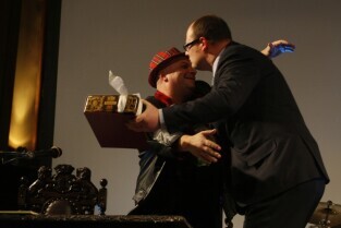 Benefis 30-lecia działalności literackiej Krzysztofa Skiby, pt. "Skiboby czyli Krzysztof Skiba XXX lat na barykadzie felietonow". Gdańsk, Nadbałtyckie Centrum Kultury. Nz. Prezydent Sopotu Jacek Karnowski i Krzysztof Skiba