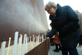 Niemcy, Berlin. 35. rocznica Upadku Muru Berlińskiego. Nz. Basil Kerski, dyrektor Europejskiego Centrum Solidarności, Axel Klausmeyer, dyrektor Fundacji Muru Berlińskiego, Prezydent Niemiec Frank-Walter Steinmeier.