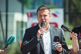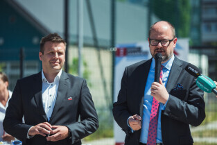 Gdańsk, ZSO nr8. Bezpłatna komunikacja miejska dla gdańskich uczniów. Nz. Łukasz Wysocki i Prezydent Gdańska Paweł Adamowicz