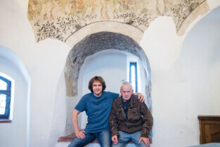 Gdańsk, ul. Rzeźnicka 47. Biała Baszta - zabytek z dofinansowaniem wojewódzkiego konserwatora. Nz. (od lewej) Prezes Klubi Józef Soszyński i Krzysztof Paul - były prezes