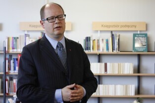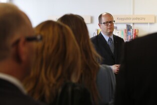 Gdańsk Przymorze. Otwarcie po kapitalnym remoncie Filii nr 9 Wojewódzkiej i Miejskiej Biblioteki Publicznej w Gdańsku, przy ul. Jagiellońskiej 8. Nz. Prezydent Gdańska Paweł Adamowicz